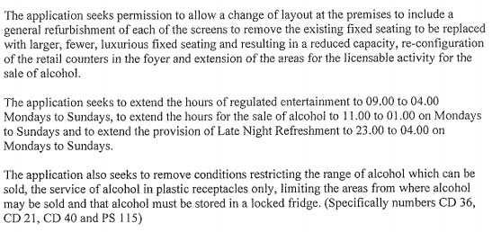 In a recent variation application under section 34 of the Licensing Act 2003, the company has applied to