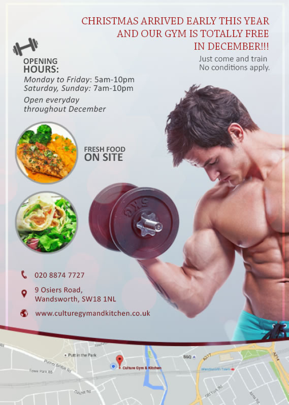 Monthly membership is usually £62 BUT for December there are no fees - simply turn up and use the gym and restaurant.