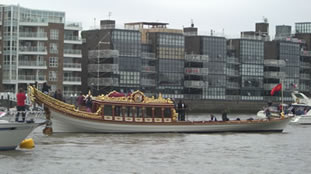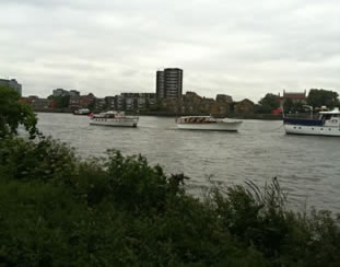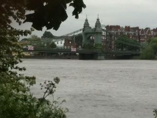| Saturday as the boats start arriving to moor between Putney & Hammersmith | Hammersmith Bridge flagged up |